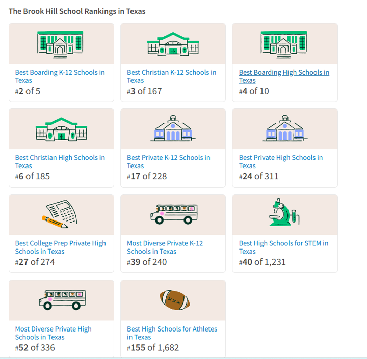 Niche에서 나와있는 텍사스 내 The Brook Hill School의 랭킹입니다.