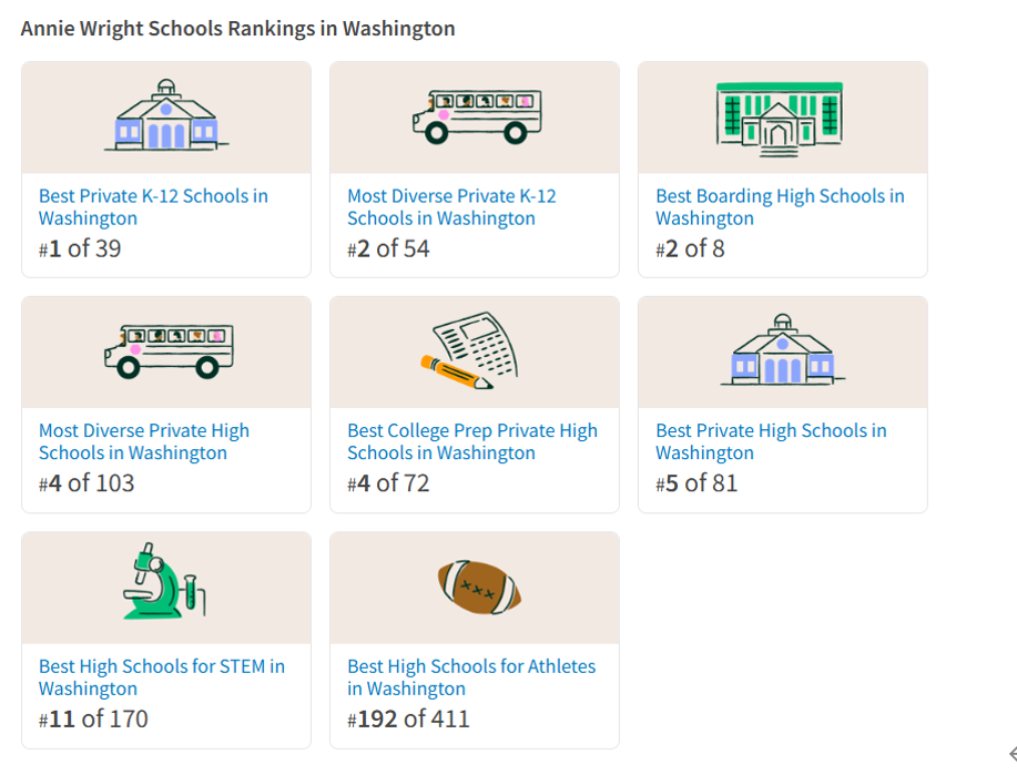Niche에서 나와있는 워싱턴주 내 Annie Wright Schools의 랭킹입니다.