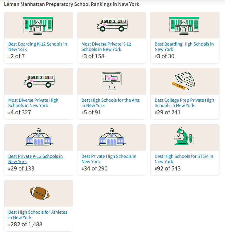 Niche에서 나와있는 뉴욕주 내 Léman Manhattan Preparatory School 의 랭킹입니다.