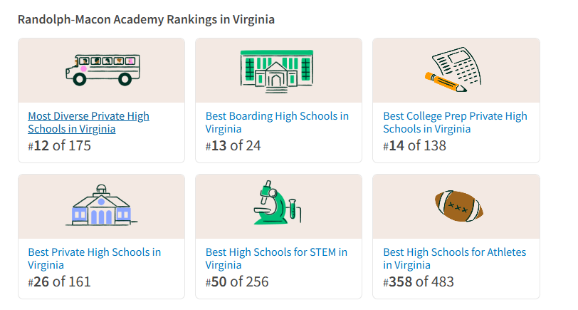 Niche에서 나와있는 버지니아 주 내 Randolph-Macon Academy 의 랭킹입니다.