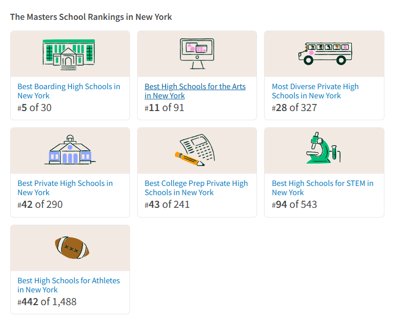 Niche에서 나와있는 뉴욕주 내 The Masters School 의 랭킹입니다.