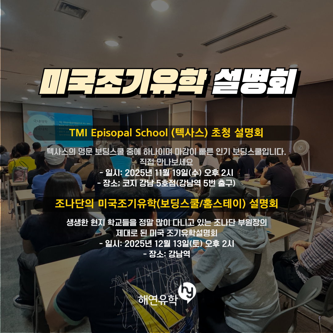📢 조나단의 미국조기유학(보딩스쿨/홈스테이) 설명회