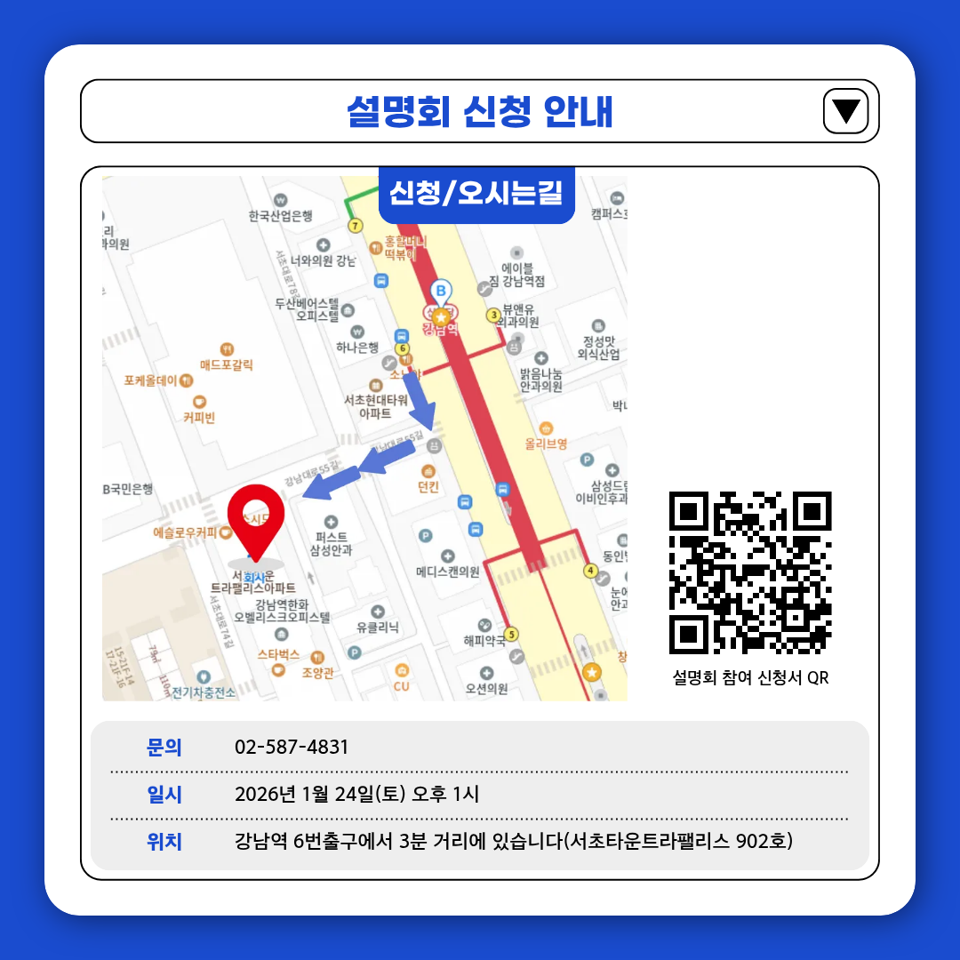 예약: https://forms.gle/2NjpmLsbGD1jUfkF9 (무료 설명회)